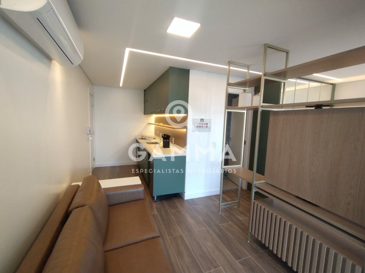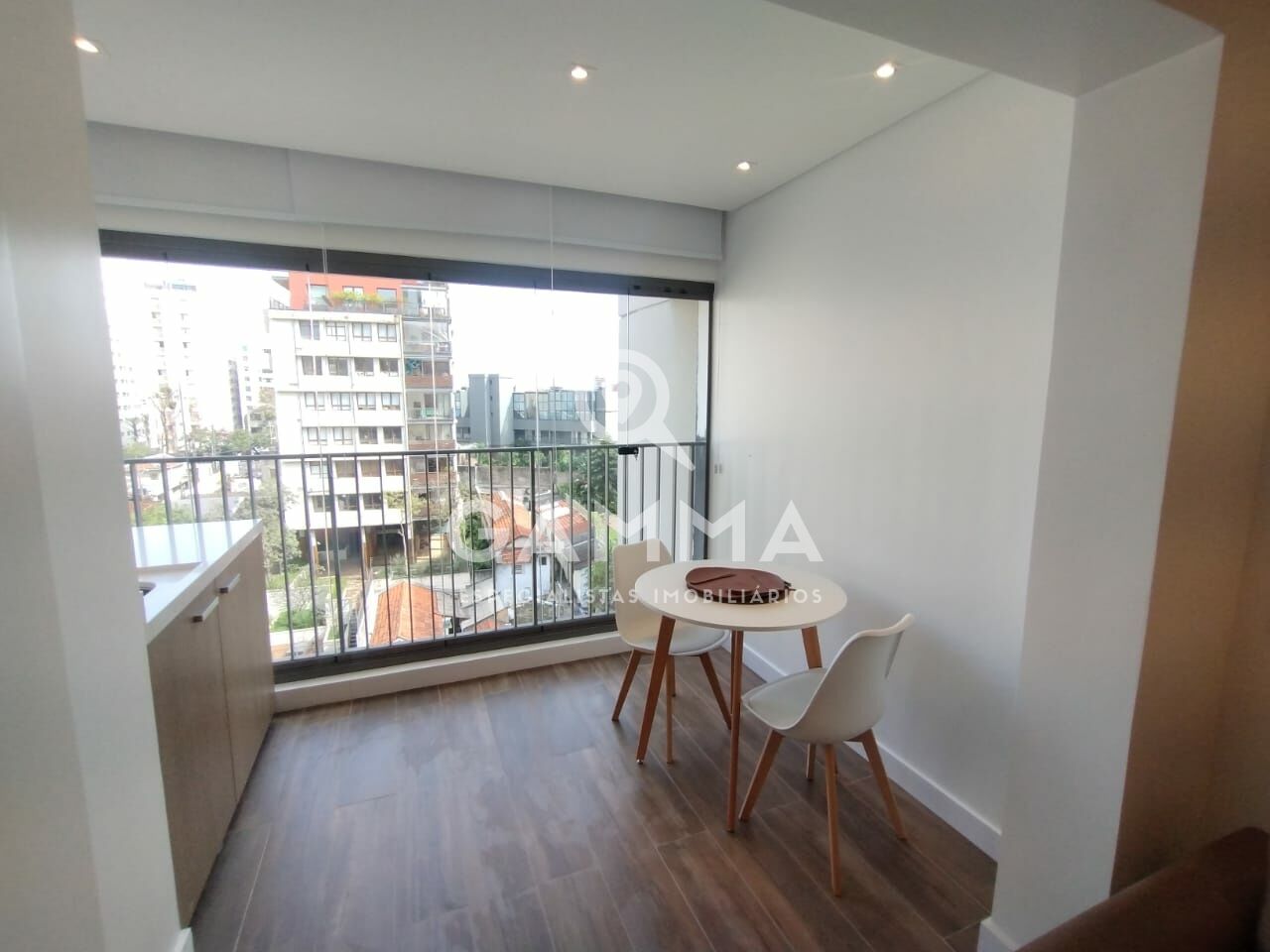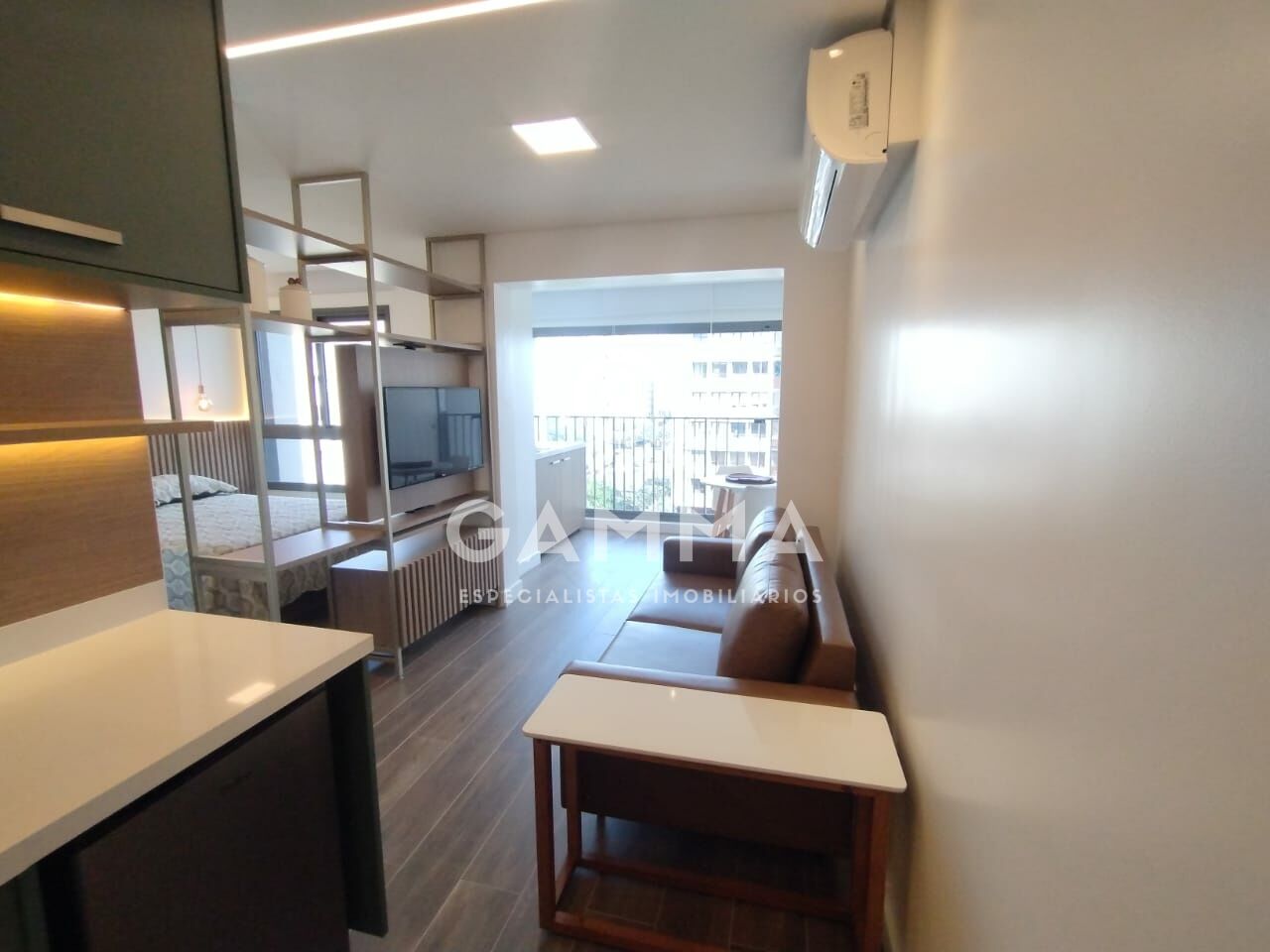 Studio impecável, decorado com muito bom gosto e requinte. O imóvel conta com varanda integrada e fechamento em vidro, proporcionando mais conforto, iluminação natural e aproveitamento dos espaços.