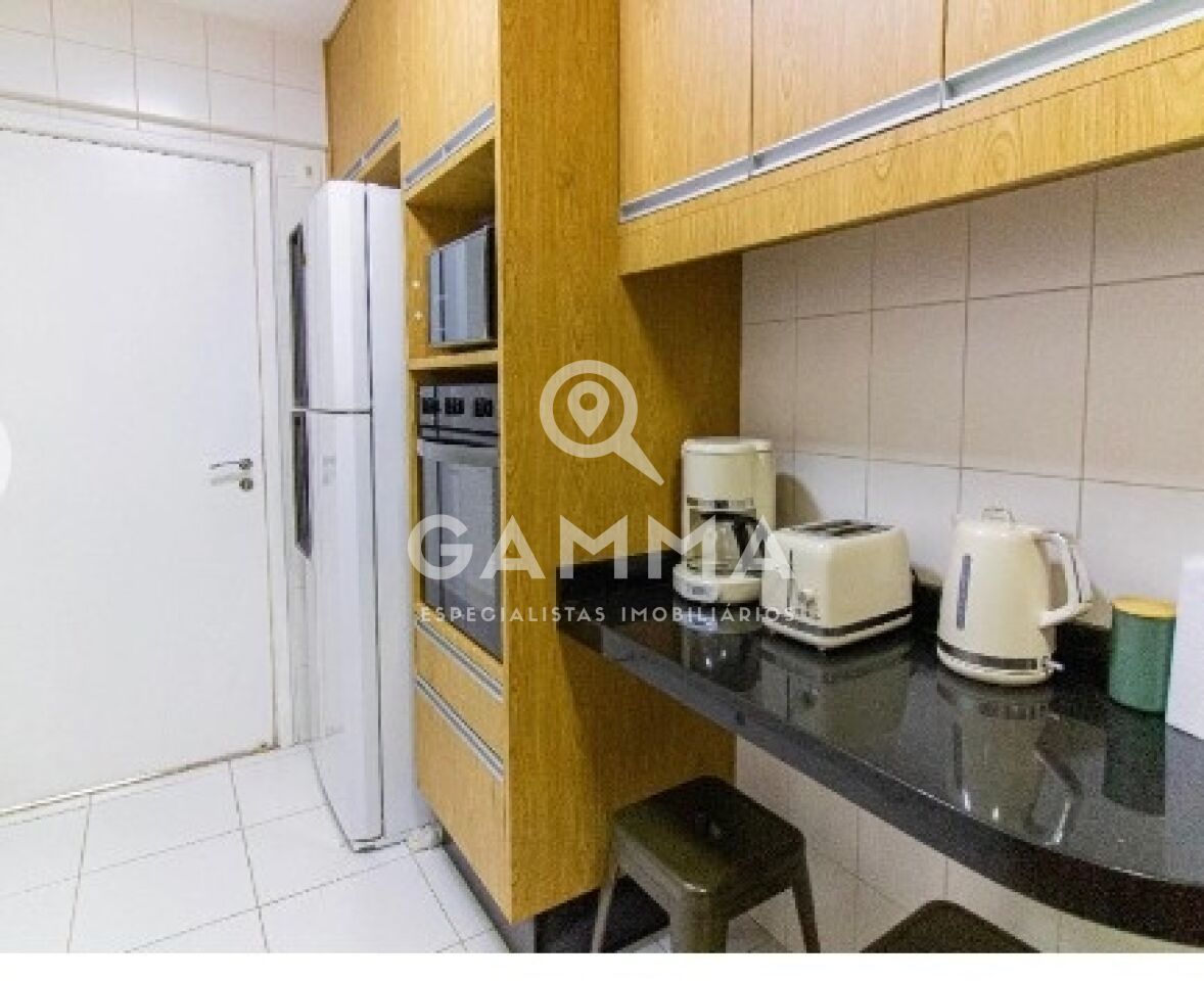 A cozinha é ampla e funcional, com ótima circulação. A área de serviço possui banheiro, e o antigo quarto de empregada foi revertido em lavabo e escritório, agregando praticidade ao dia a dia.